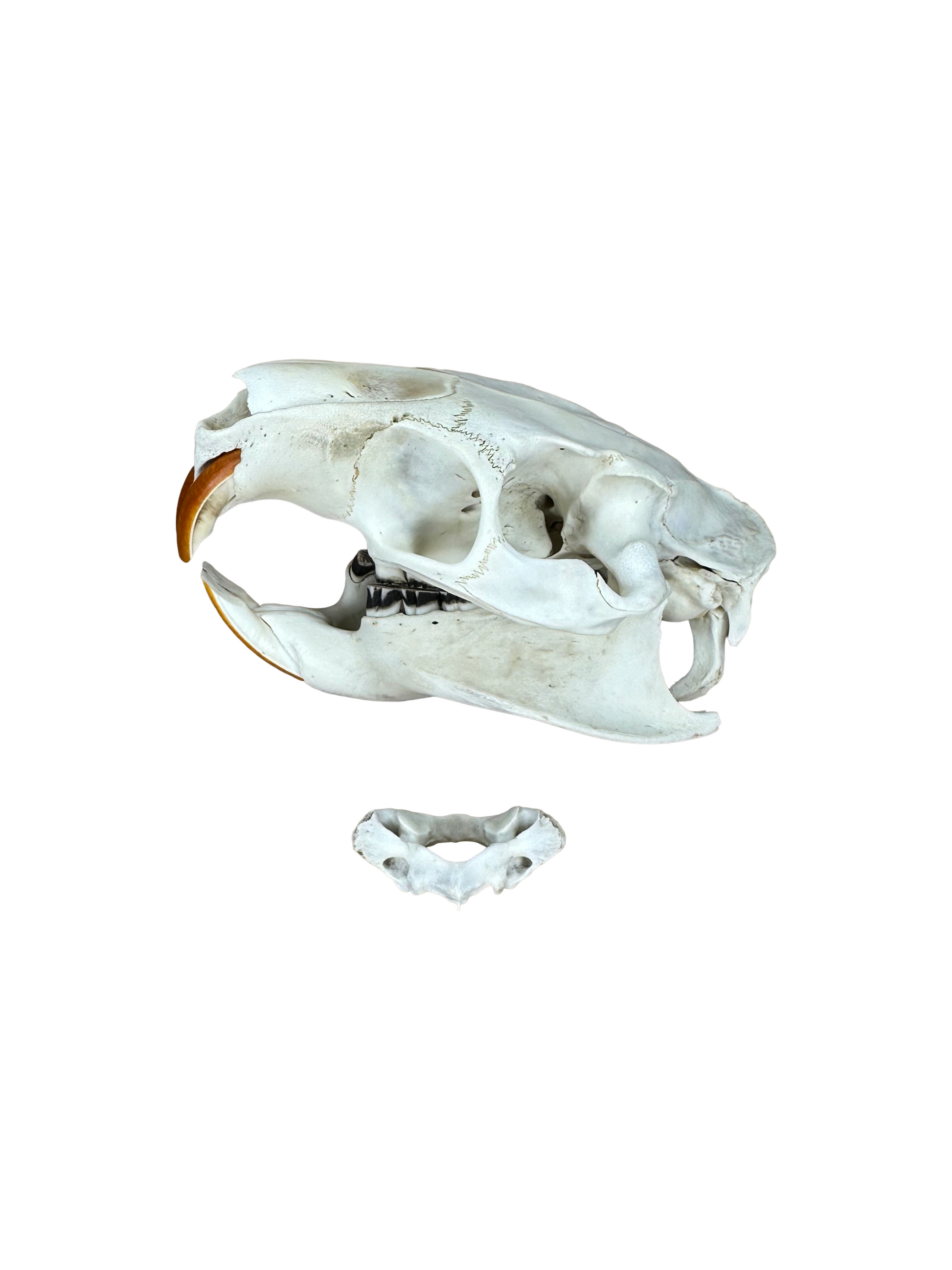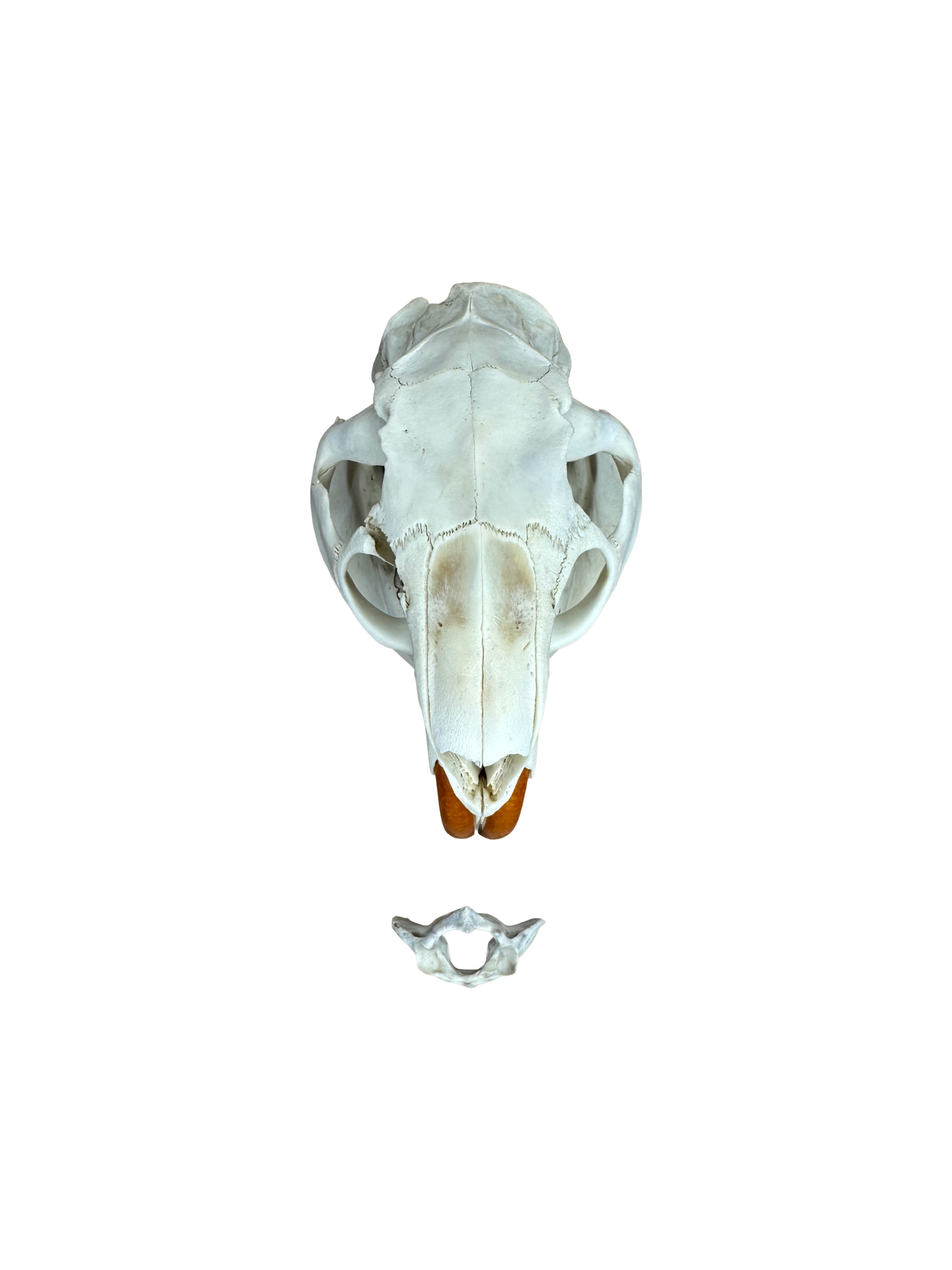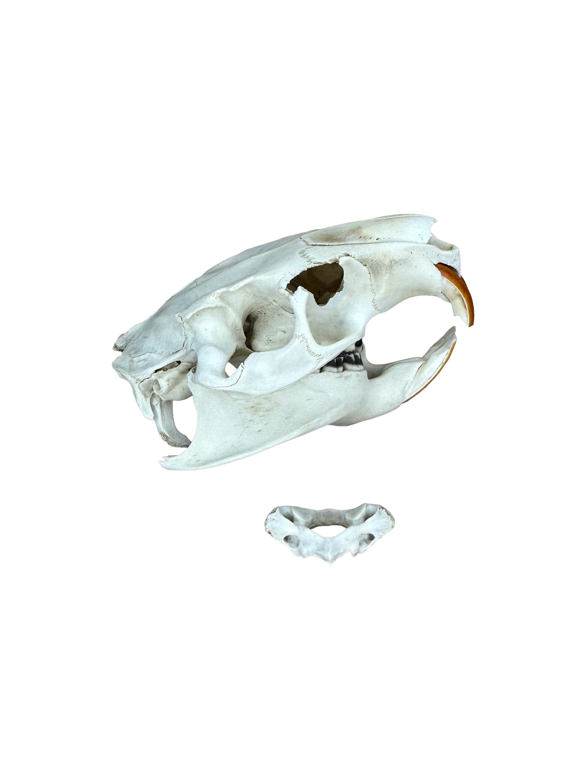 Echter Nutriascheitel (Myocastor coypus) – sorgfältig gereinigt und gebleicht, perfekt für Sammler von Naturpräparaten und außergewöhnlicher Dekoration. Jeder Nutriaschädel ist ein einzigartiges Exemplar, das die faszinierende Struktur und Form dieses Tieres widerspiegelt. Ideal als Sammlerstück oder für kreative Projekte.