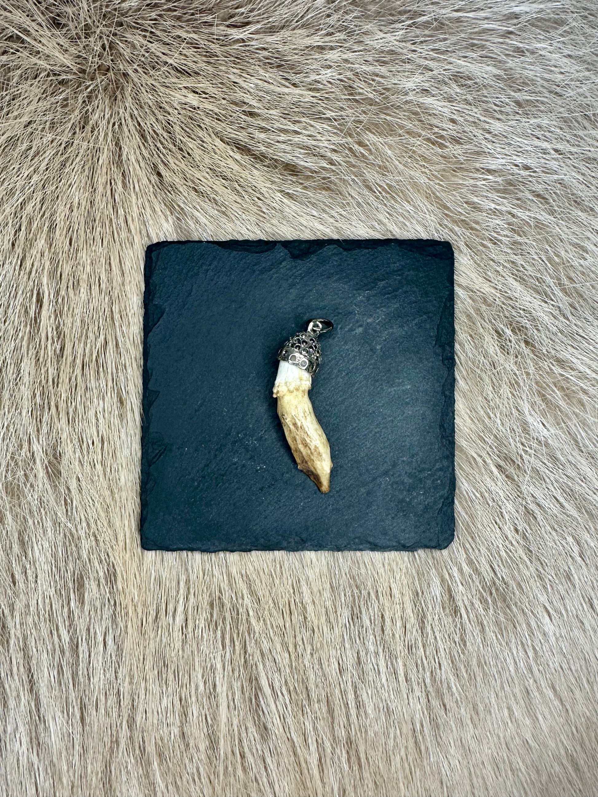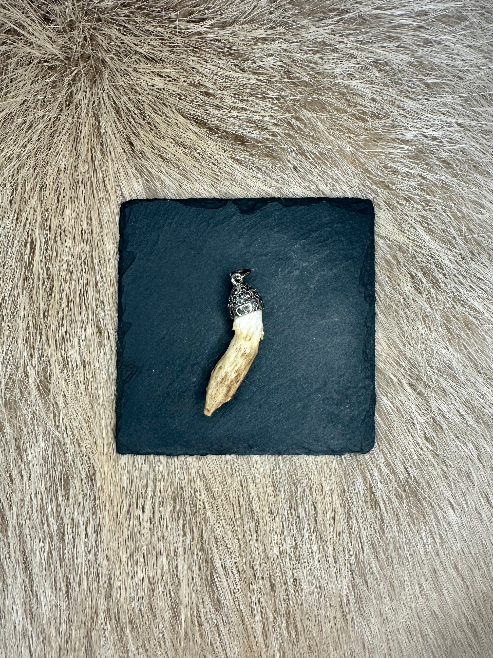 Dieser Anhänger kombiniert natürliche Ästhetik mit traditioneller Handwerkskunst und eignet sich perfekt als Schmuckstück, Glücksbringer oder besonderes Sammlerstück für Jagd- und Naturfreunde.