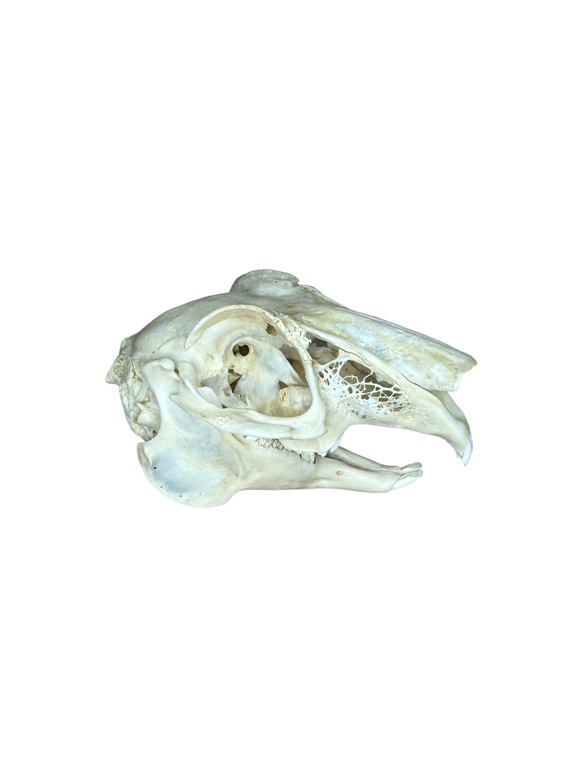 Jeder Feldhasenschädel ist ein Unikat mit natürlichen Abweichungen in Farbe und Struktur. Ideal geeignet als Sammlerstück, Anschauungsobjekt, für kreative Weiterverarbeitung oder als dekoratives Element im Curio-, Jagd- oder Naturstil.