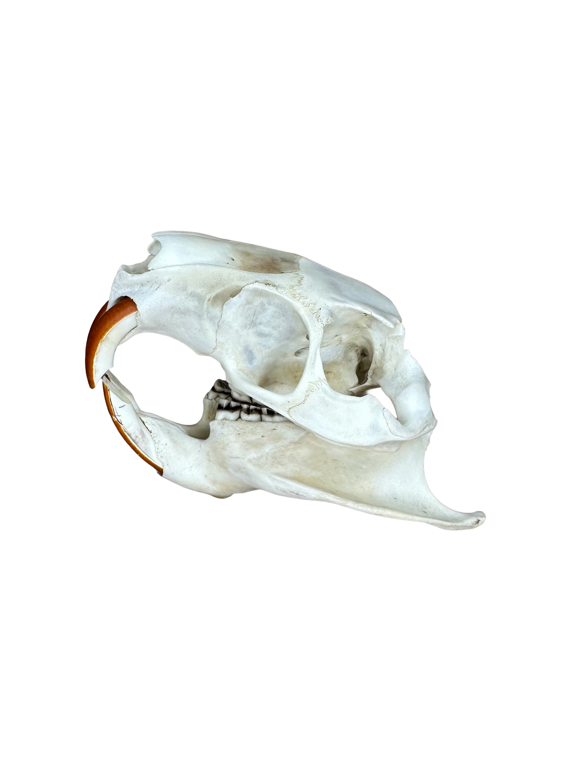 Echter Nutriascheitel (Myocastor coypus) – sorgfältig gereinigt und gebleicht, perfekt für Sammler von Naturpräparaten und außergewöhnlicher Dekoration. Jeder Nutriaschädel ist ein einzigartiges Exemplar, das die faszinierende Struktur und Form dieses Tieres widerspiegelt. Ideal als Sammlerstück oder für kreative Projekte.