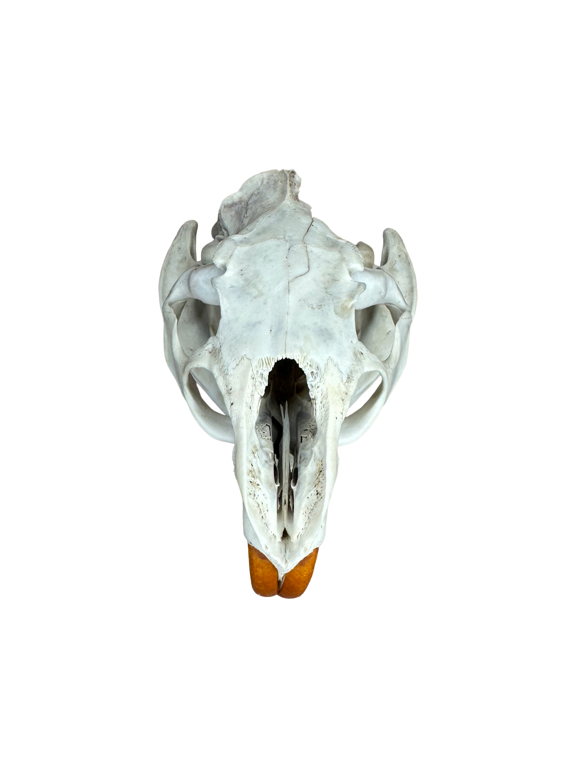 Echter Nutriascheitel (Myocastor coypus) – sorgfältig gereinigt und gebleicht, perfekt für Sammler von Naturpräparaten und außergewöhnlicher Dekoration. Jeder Nutriaschädel ist ein einzigartiges Exemplar, das die faszinierende Struktur und Form dieses Tieres widerspiegelt. Ideal als Sammlerstück oder für kreative Projekte.