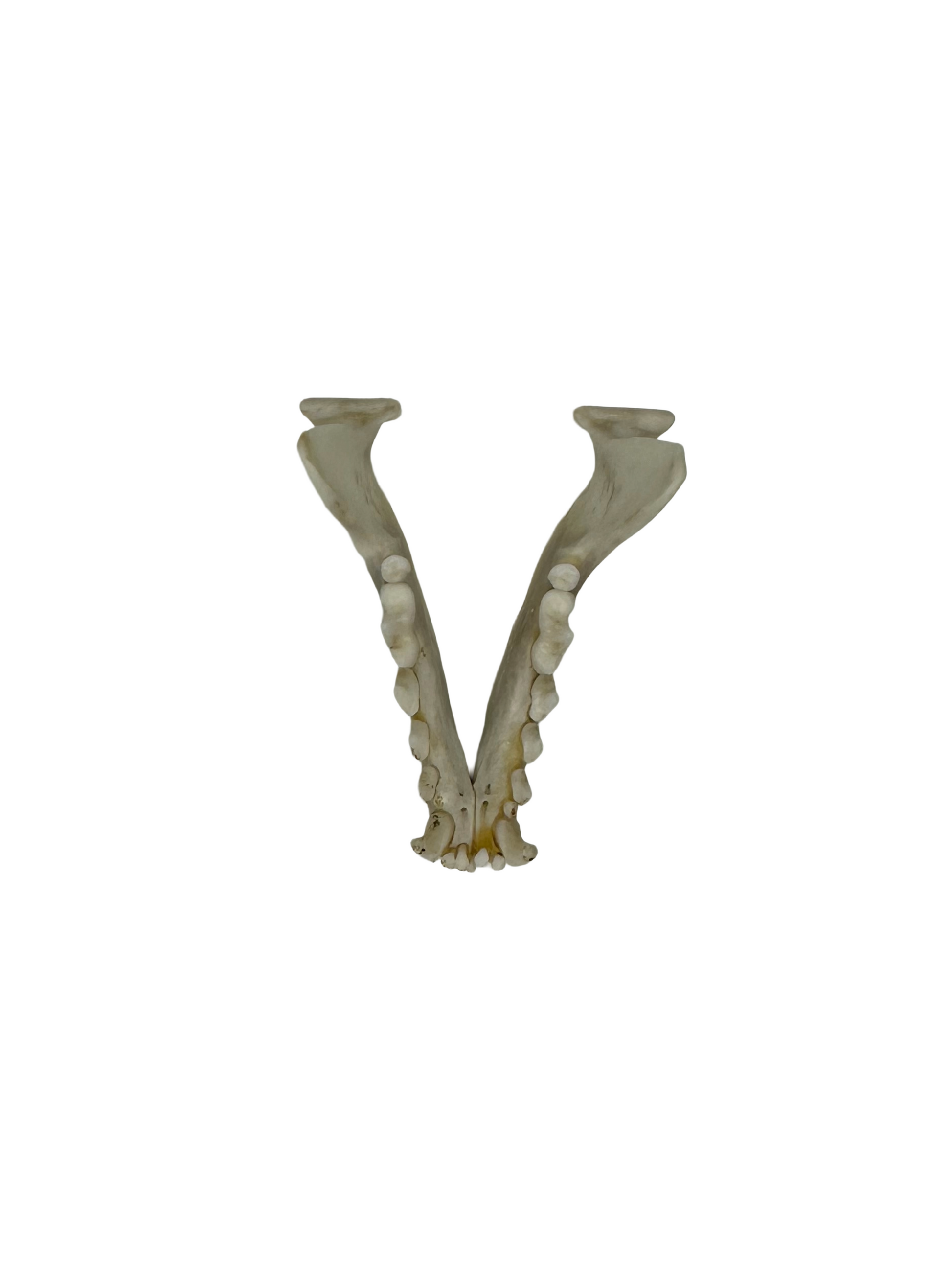 - Zustand: Schädel ist intakt, es sind aber drei Zähne komplett abgebrochen und die anderen sehen auch stark gebraucht aus.